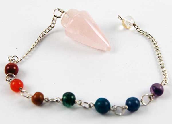 Pendulum Seven Chakra Plain Rose Quartz 3cm With 19cm Chain