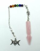 Pendulum Triple Moon Rose Quartz Wand On Chakra Chain