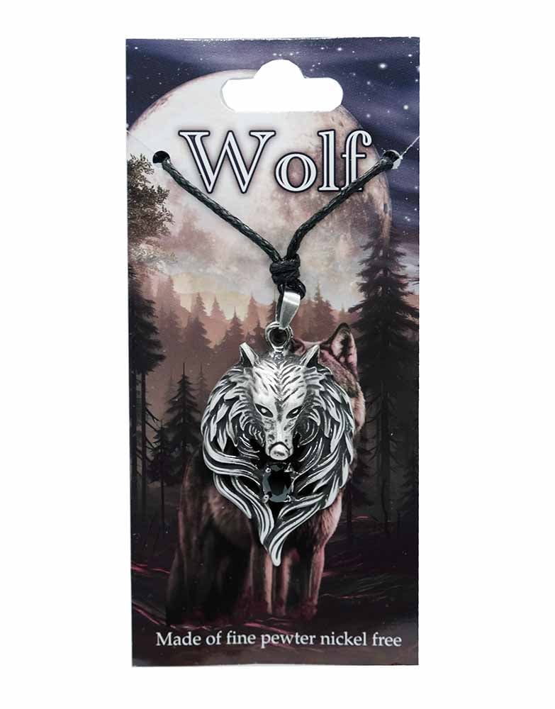 Pewter Pendant Wolf Black Stone
