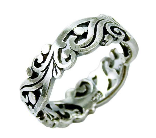 Silver Ring Band Floral Cut W0.6cm