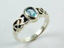 Silver Ring Band With Blue Topaz Stone and Celtic Cut Sides
