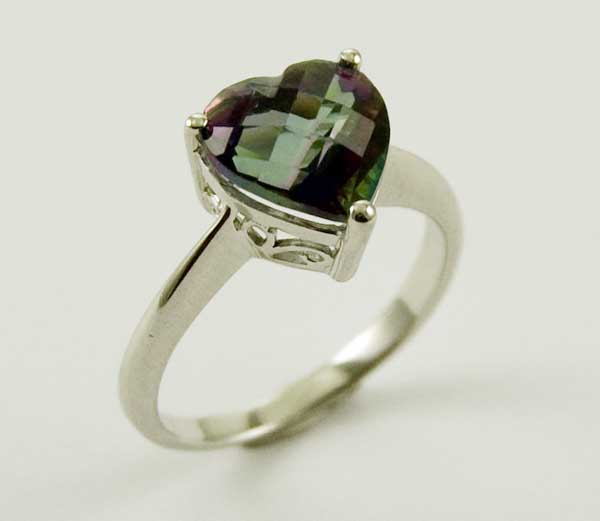 Ring Heart Inset Mystic Topaz Stone W9mm 925 Sterling Silver