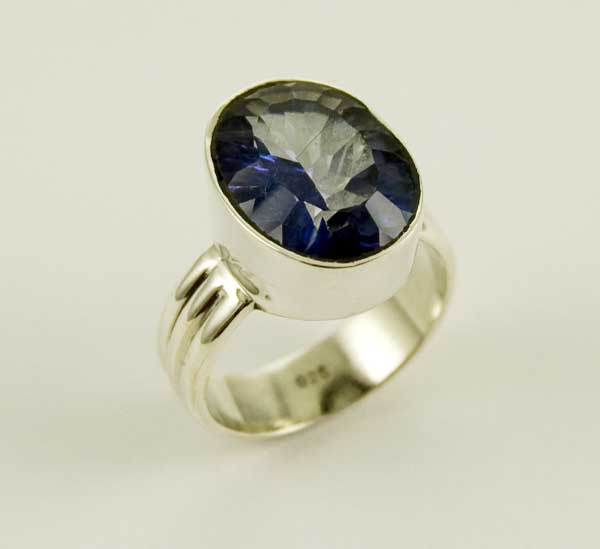 Ring Silver Oval With Plain Rim Rainbow Mystic Topaz Stone