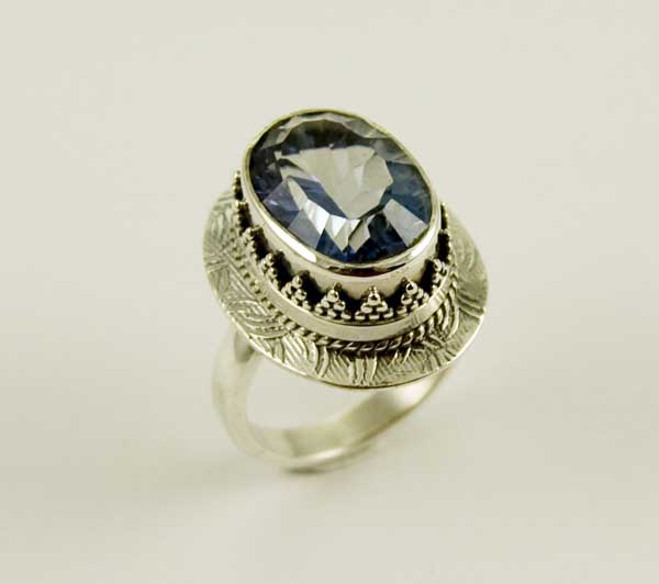 Ring Silver Oval With Fancy Bobbled Rim Blue Mystic Topaz Stone