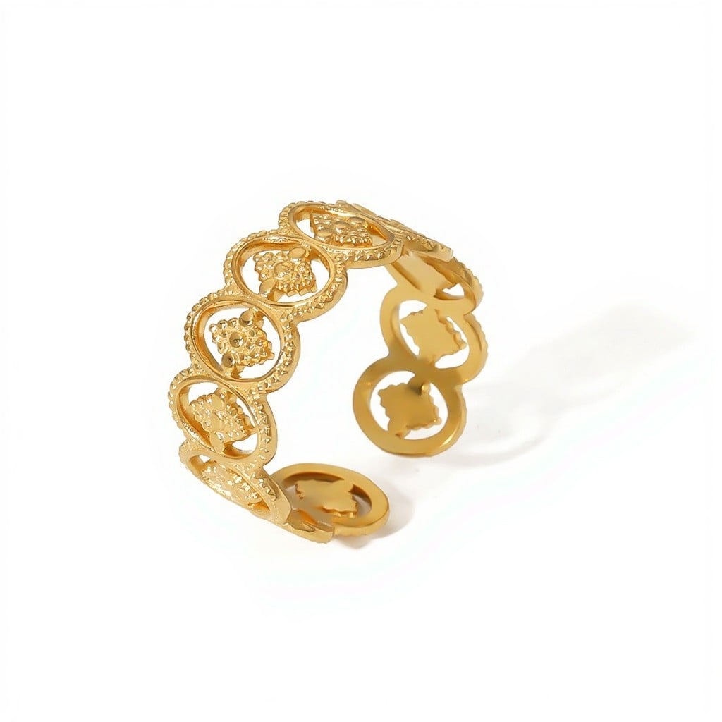 Ring Stainless Steel 18K Yellow Gold Plated Adjustable Waterproof Non-Tarnish Adjustable Size