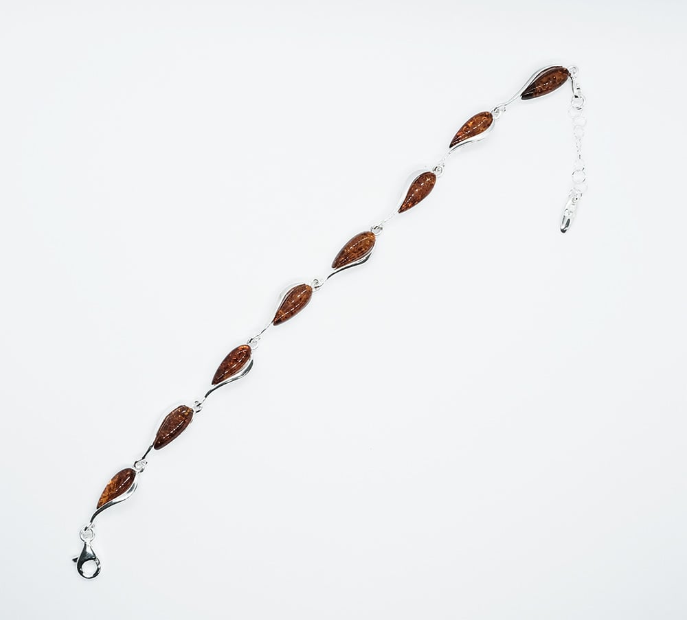 Silver Amber Bracelet Teardrop Links 9g