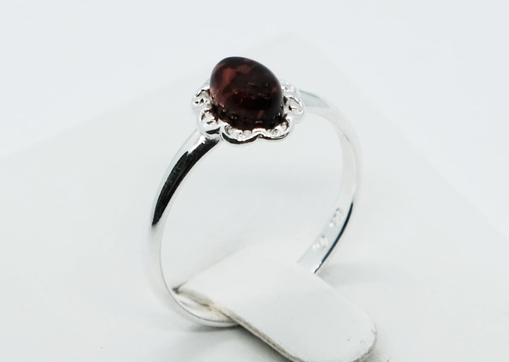 Silver Amber Ring Oval Flower 1.7g