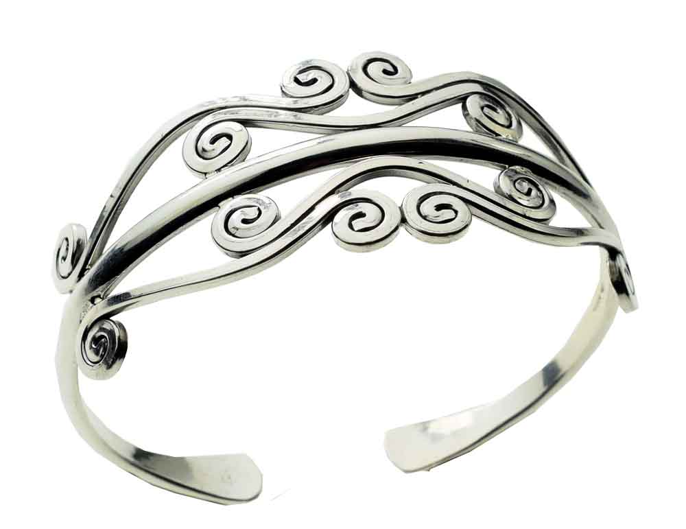 Bangle With Double Swirl Design 925 Sterling Silver
