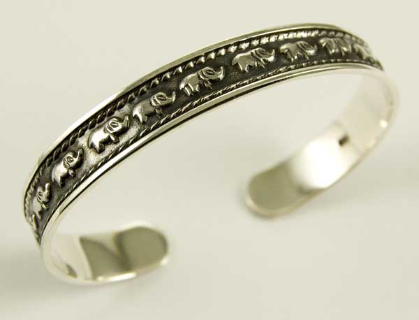 Silver Bangle With Elephants 925 Sterling Silver Assayed