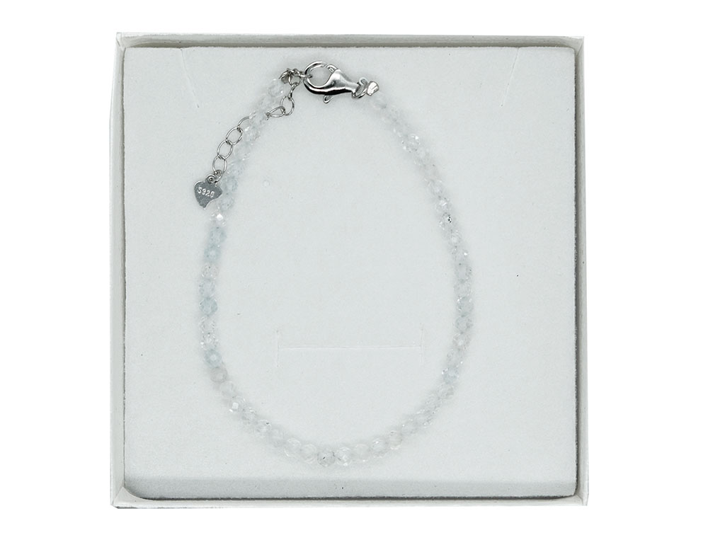 Bracelet 3mm Faceted Topaz White Silver Clip With Chain (Box not included)