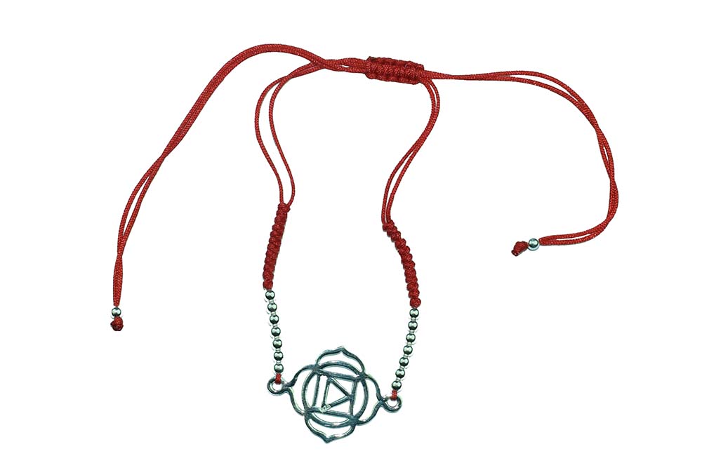 Bracelet Chakra Root On Extendable Polyester String 925 Sterling Silver