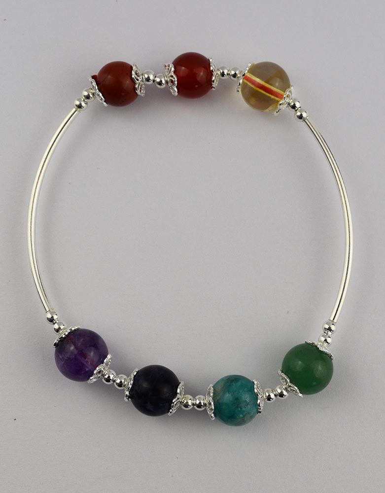Bracelet With Chakra Beads 925 Sterling Silver