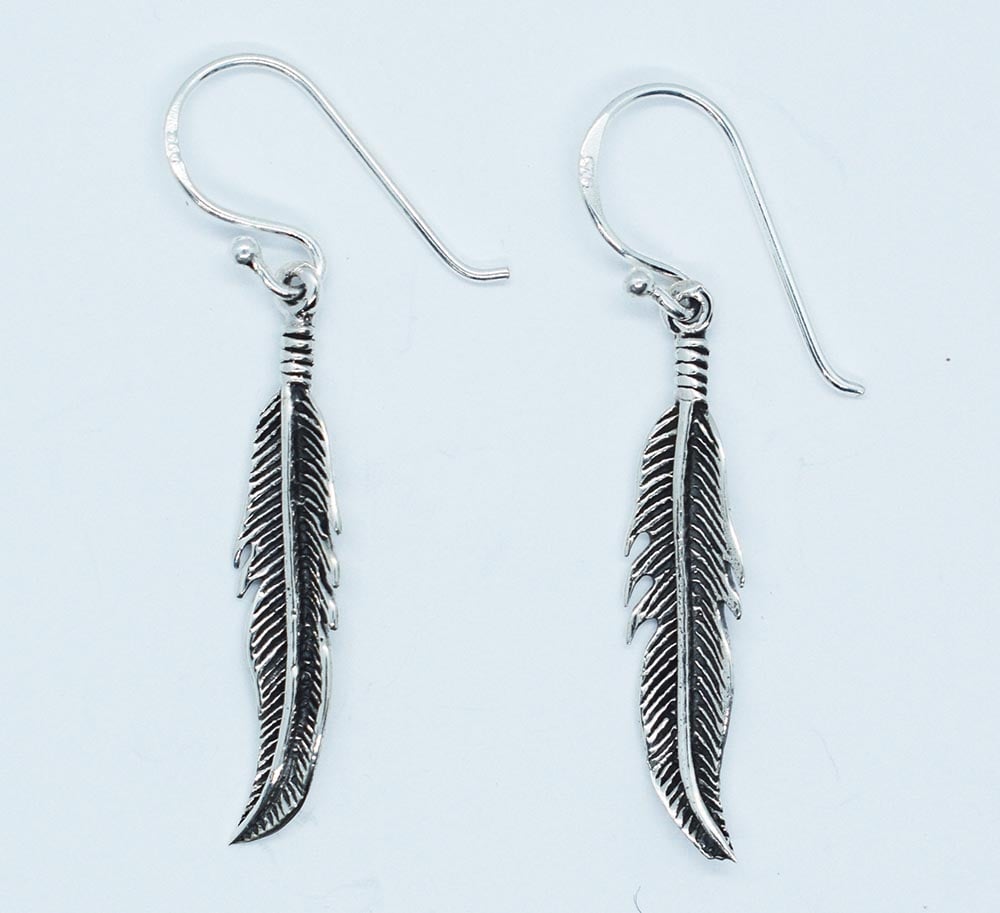 Silver Earing Feather Oxidised