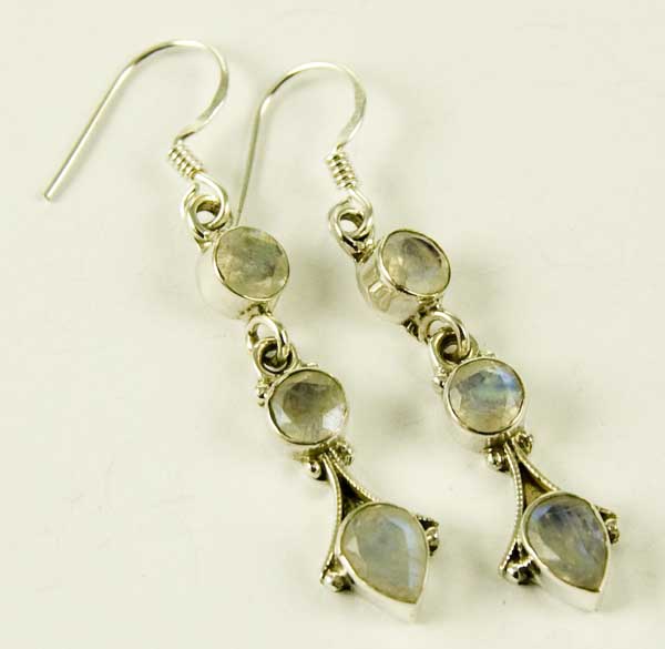 Earring Double Circle And Tear Drop Labradorite Cut Stones Length From Top Hook 4cm 925 Sterling Silver