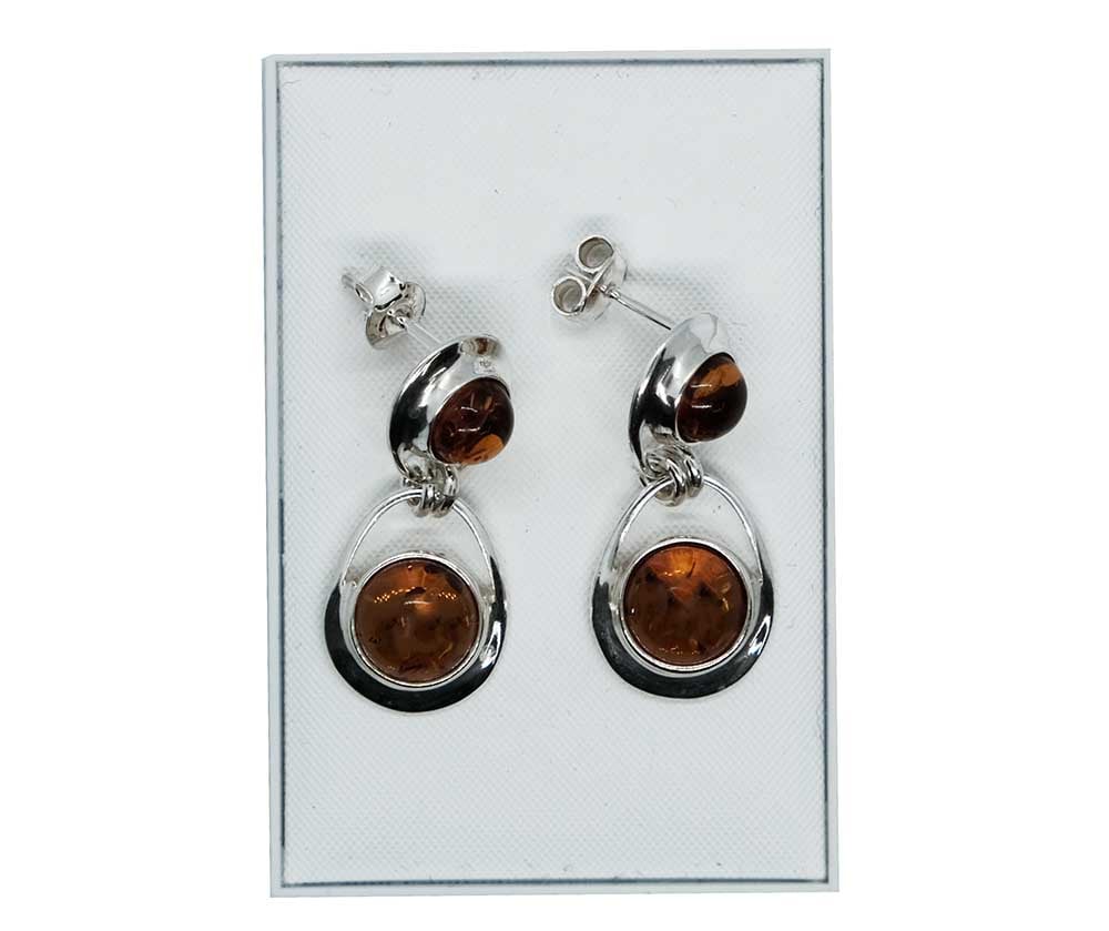 Silver Earring Amber Double Stone Round L1Inch