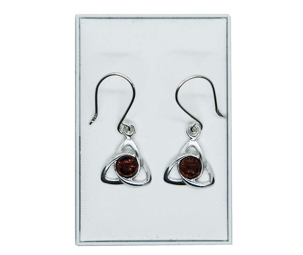 Silver Earring Amber Cognac Stone Triquetra Style L1.5 W1.2cm Sterling Silver