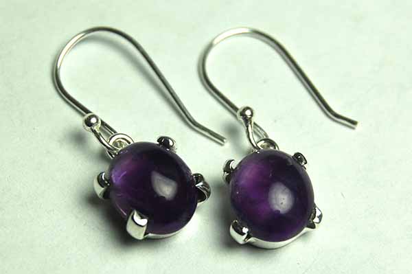 Earring Amethyst Cab Oval Stone Claw Set Drop L2.5cm 925 Sterling Silver