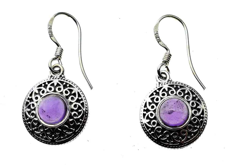 Earring Circle Twisted Pattern With Amethyst Stone 925 Sterling Silver