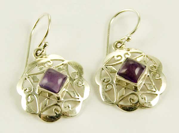 Earring Flower Cut Design With Amethyst Stone 925 Sterling Silver