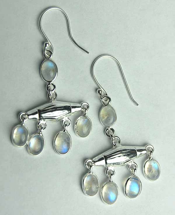 Earring Fancy Bar With Hanging Rainbow Cab Stones L5cm 925 Sterling Silver