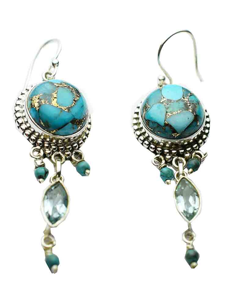 Earring Circle Hanging With Blue Copper Stone And Beads 925 Sterling Silver