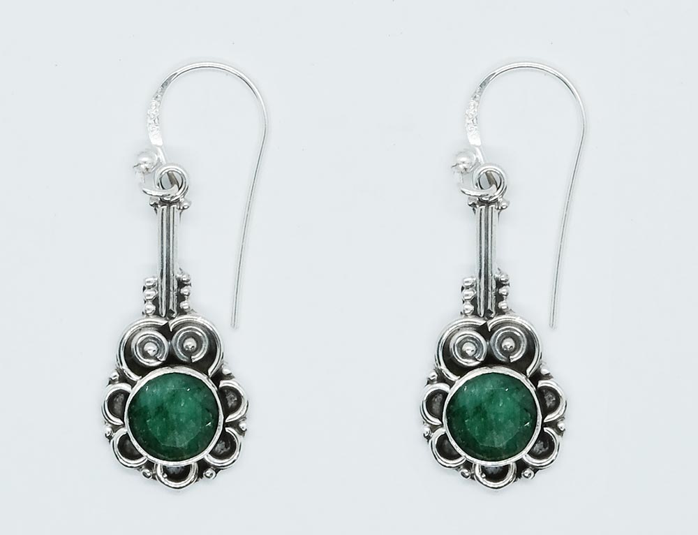 Earring Circle Hanging With Emerald Quartz Stone 925 Sterling Silver
