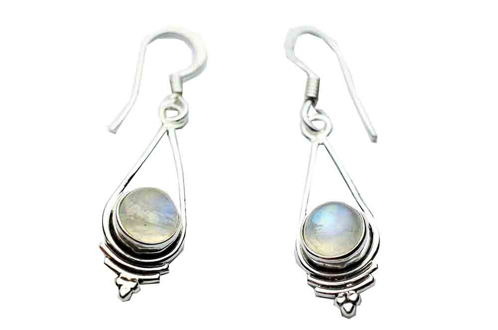 Earring Tear Drop Shape Hanging With Circle Rainbow Stone 925 Sterling Silver