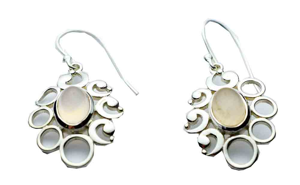 Earring Swirly Circles With Rose Quartz Stone 925 Sterling Silver
