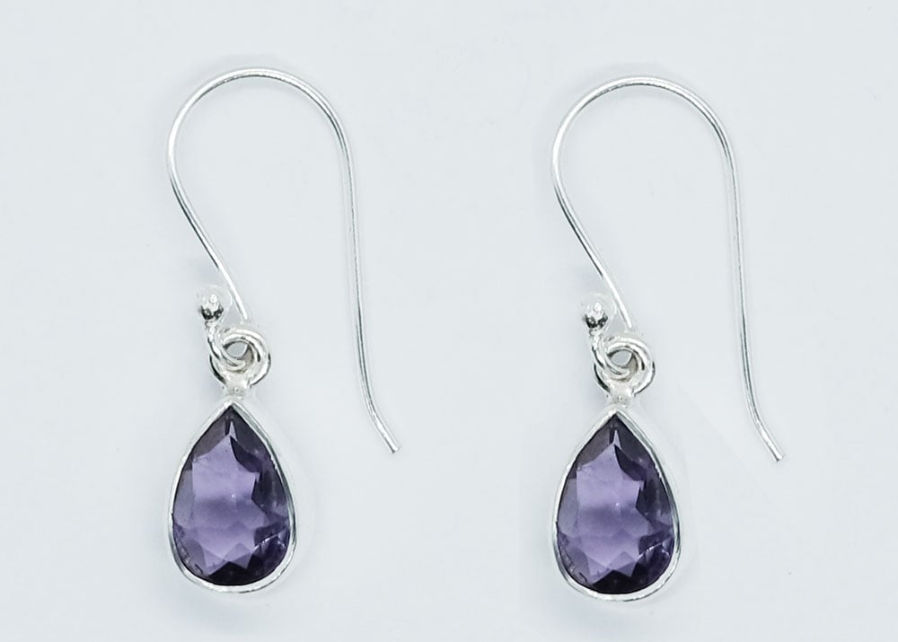 Silver Earring Amethyst Pear Cut 7x9mm