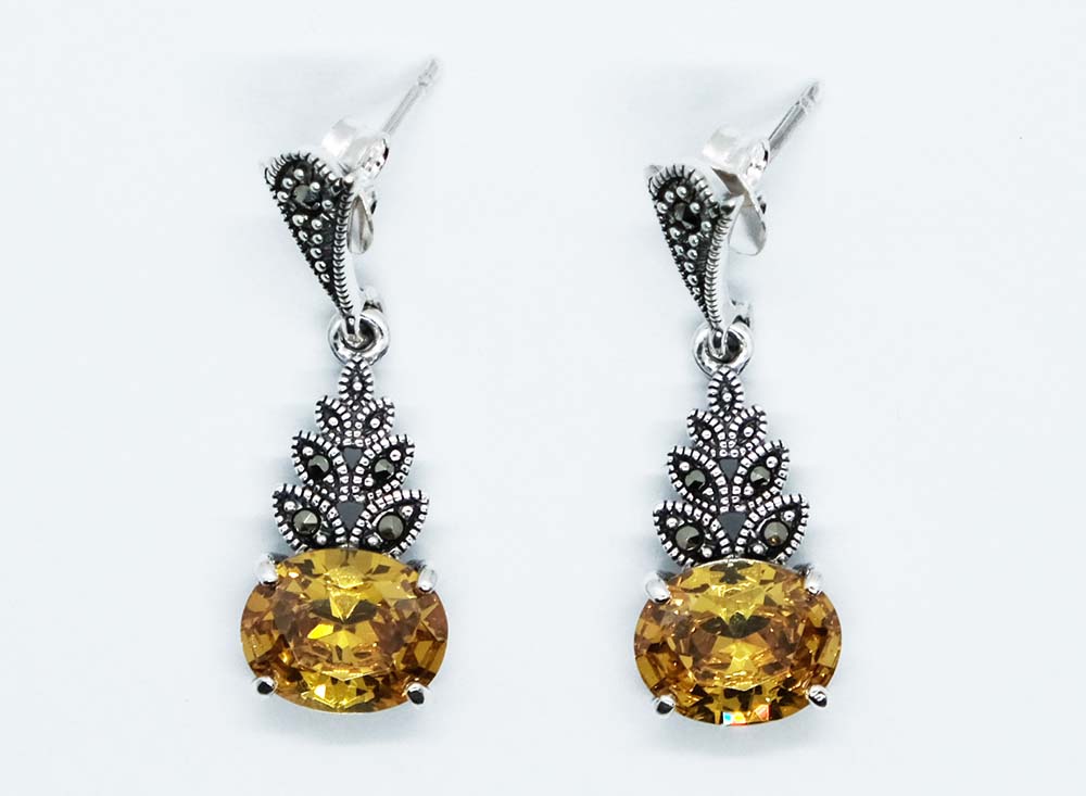 Silver Earring Cubic Zirconia Citrine Oval Shaped