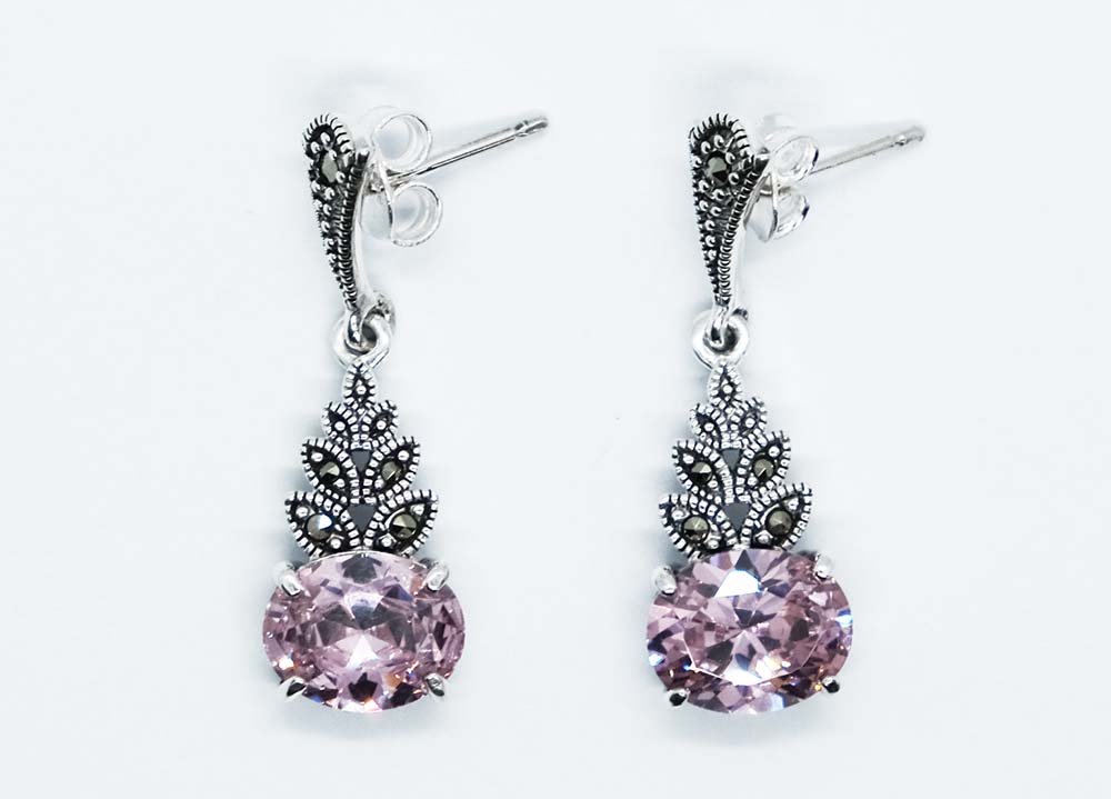 Silver Earring Cubic Zirconia Pink Oval Shaped