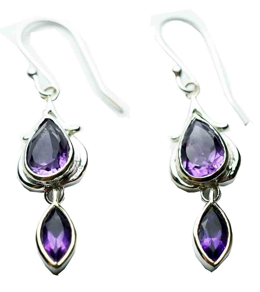 Earring Double Amethyst Hanging Stones Plain 925 Sterling Silver