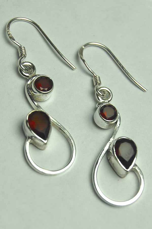 Earring Swirl Drop With Double Garnet Cut Stones L4.2cm 925 Sterling Silver