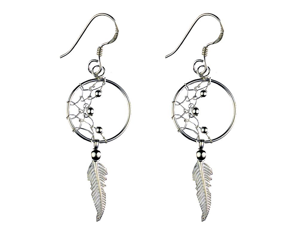 Silver Earing Dream Catcher and Feather 2.5cm H