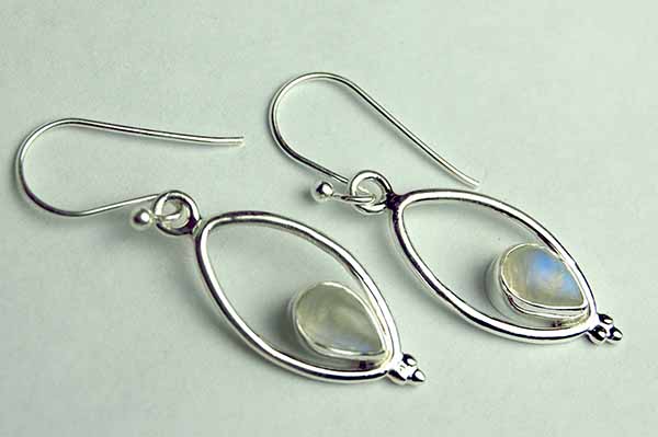 Earring Rainbow Cab Tear Drop Stone L3.5cm 925 Sterling Silver