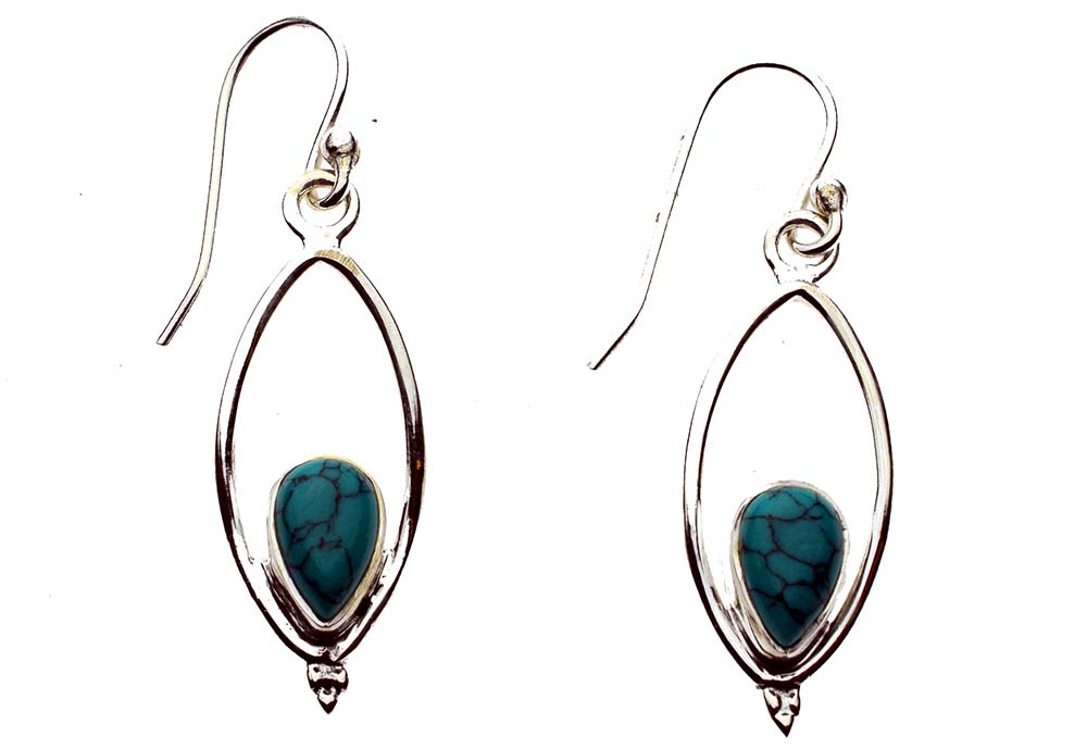Earring Turquoise Cab Tear Drop Stone L3.5cm 925 Sterling Silver