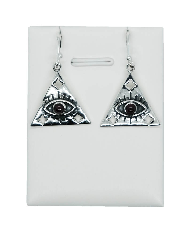 Silver Earring Eye Triangle Garnet