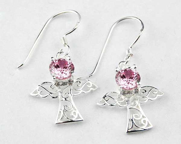 Earring Fairy With Pink CZ Faceted Stone H3.1XW2cm 925 Sterling Silver
