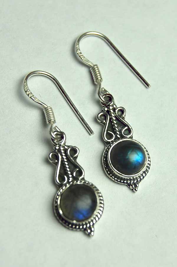 Earring Fancy Drop With Plain Circle Labradorite Stone L3.2cm 925 Sterling Silver