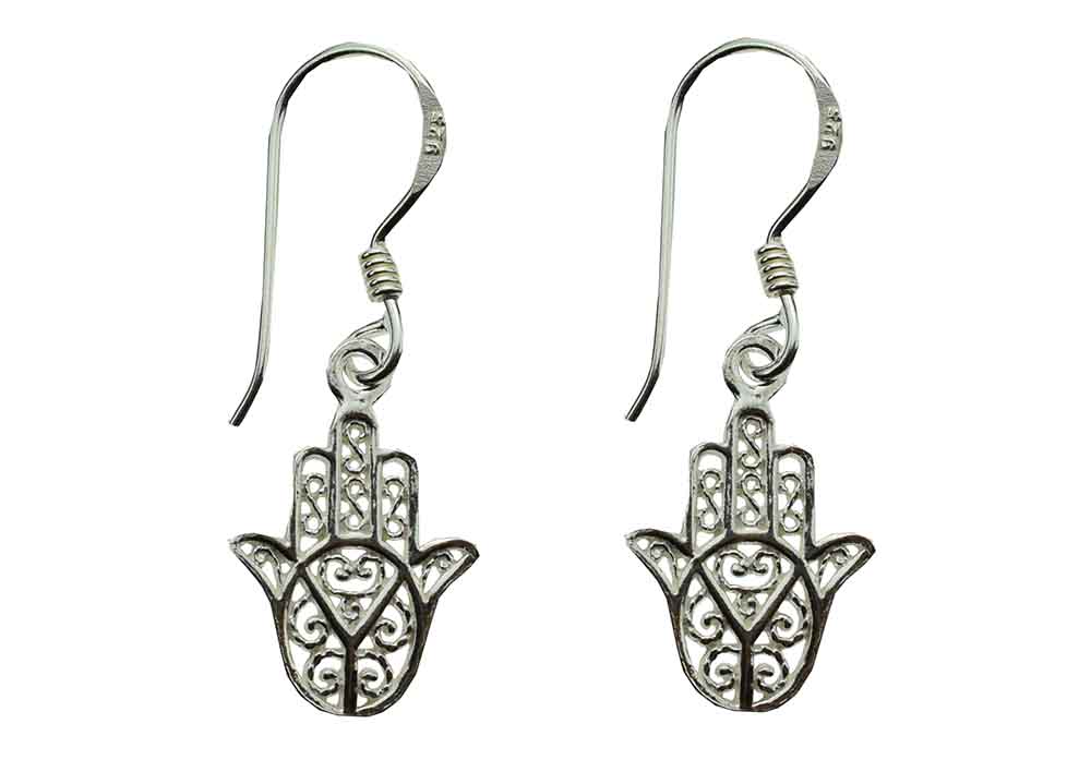 Earring Fatima Hand Swirl Cut Drop L3.2cm 925 Sterling Silver