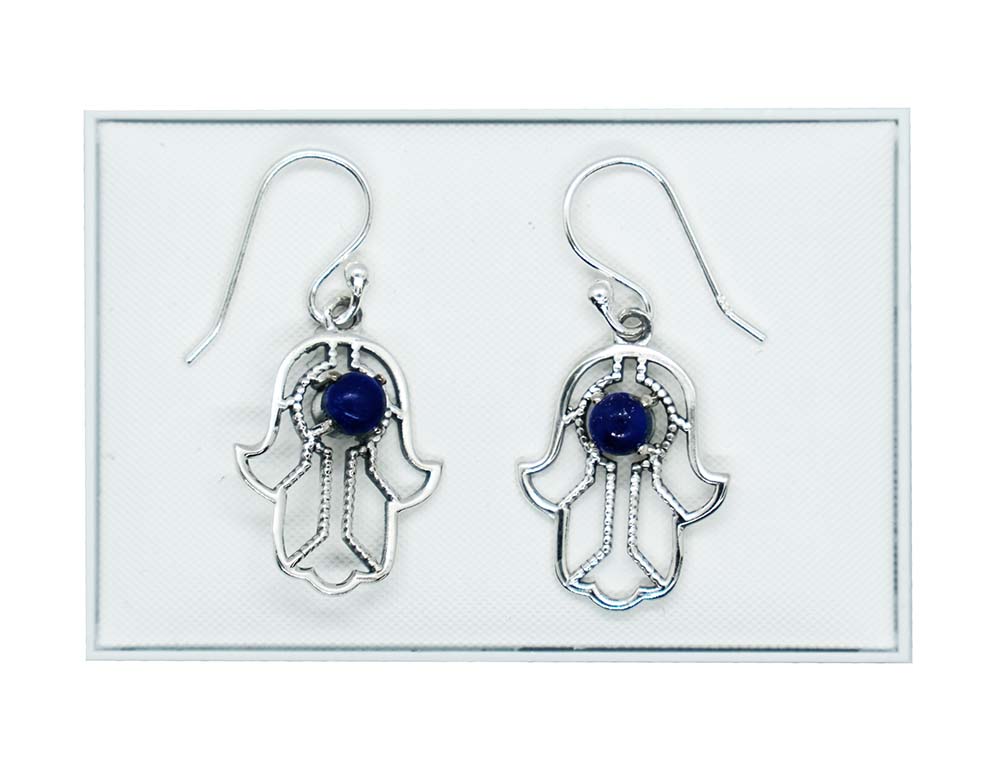 Silver Earring Fattima Lapis 925 Sterling Silver, Approx. 32 x 14.5mm