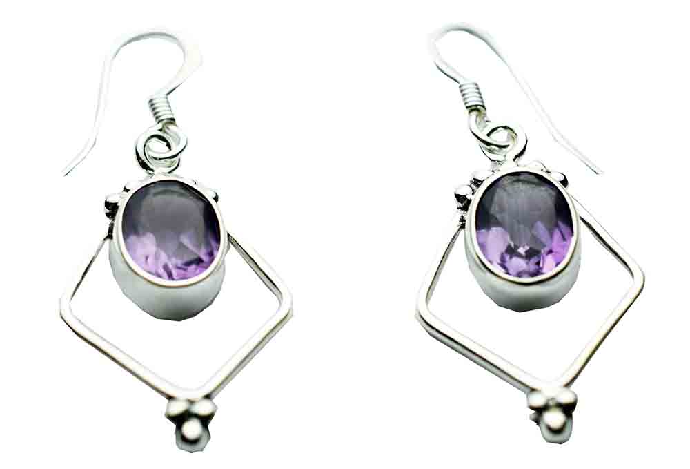 Earring Square Style Hanging With Flat Oval Amethyst Stone 925 Sterling Silver