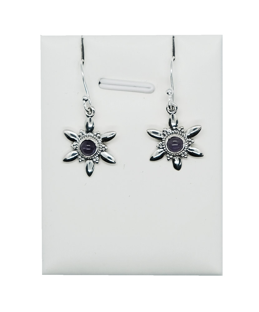 Silver Earring Star Flower Design with Cabochan Amethyst Stone 925 Sterling Silver