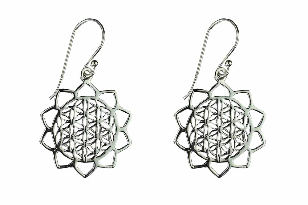Earring Flower Of Life Hanging 925 Sterling Silver