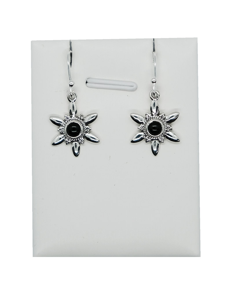 Silver Earring Star Flower Design with Cabochan Onyx Stone 925 Sterling Silver