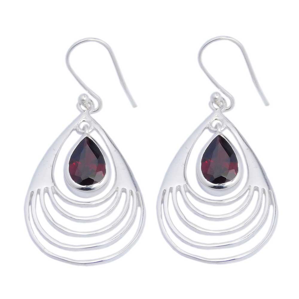 Earring Garnet Stone Hanging In Elegant Tear Drop L4.5cm. Approx Weight Is 17 Grams 925 Sterling Silver