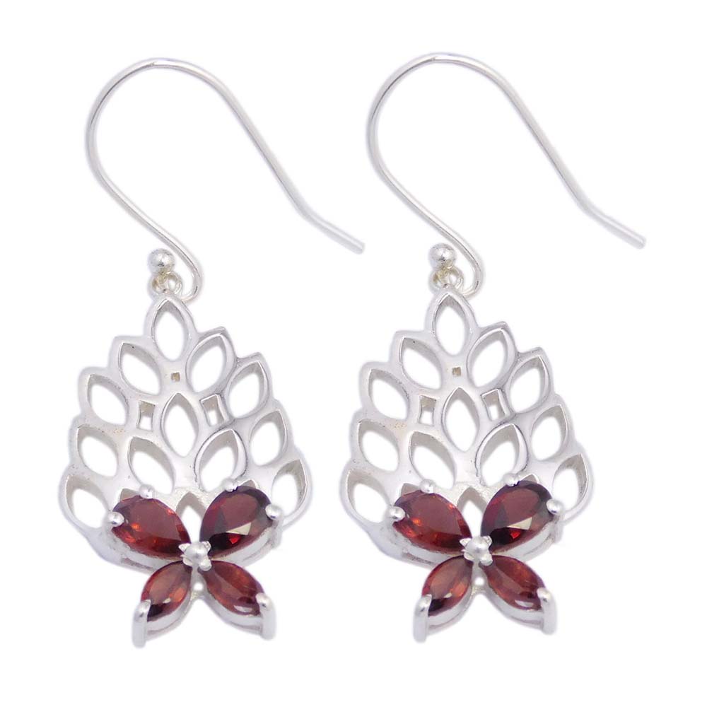 Earring Butterfly Drop With Garnet Stones And Cut Style Backdrop 4.5cm. Approx Weight Is 18 Grams 925 Sterling Silver