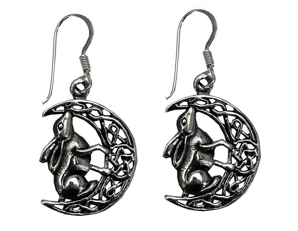 Earring Hare On Celtic Moon Size From Top Of Hook L3.5 925 Sterling Silver Design by Lisa Parker
