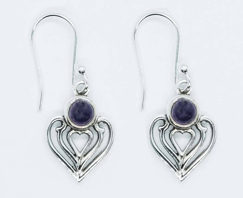 Silver Earring Heart Amethyst Round Cab 4x4mm