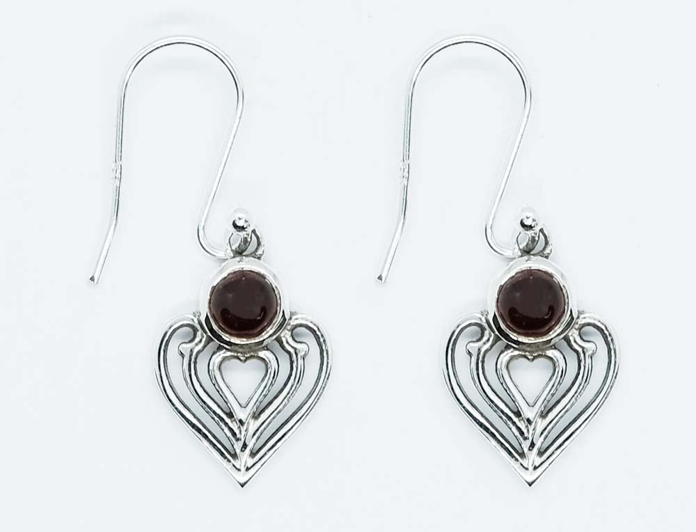 Silver Earring Hear Garnet Round Cab 4x4mm